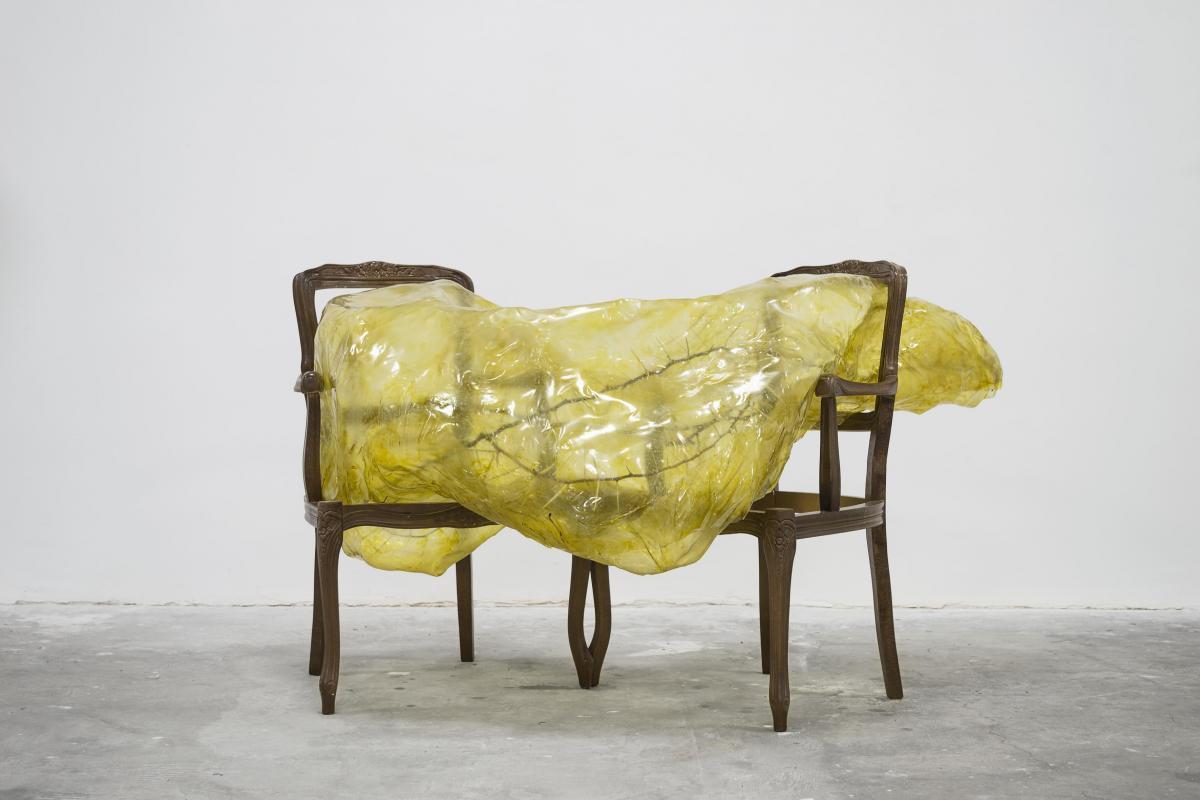 Un tappeto persiano diviene installazione scultorea: attraverso un contrasto estetico molto marcato che vede l’innesto di elementi architettonici brutalisti nella grazia del più tradizionale arredo domestico, l’opera di Silvia Giambrone rivela il potenziale violento delle tensioni strutturali ma sotterranee che abitano il quotidiano.