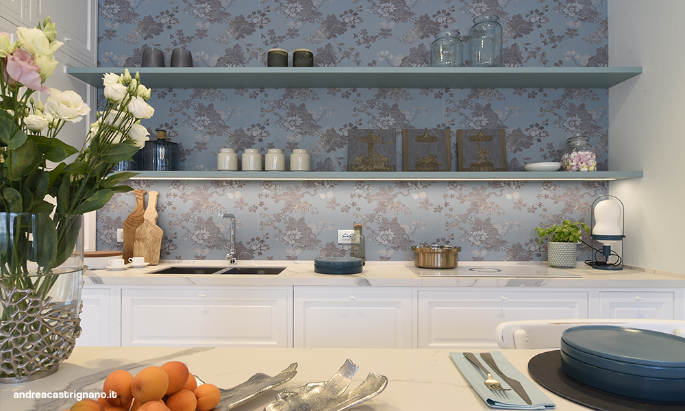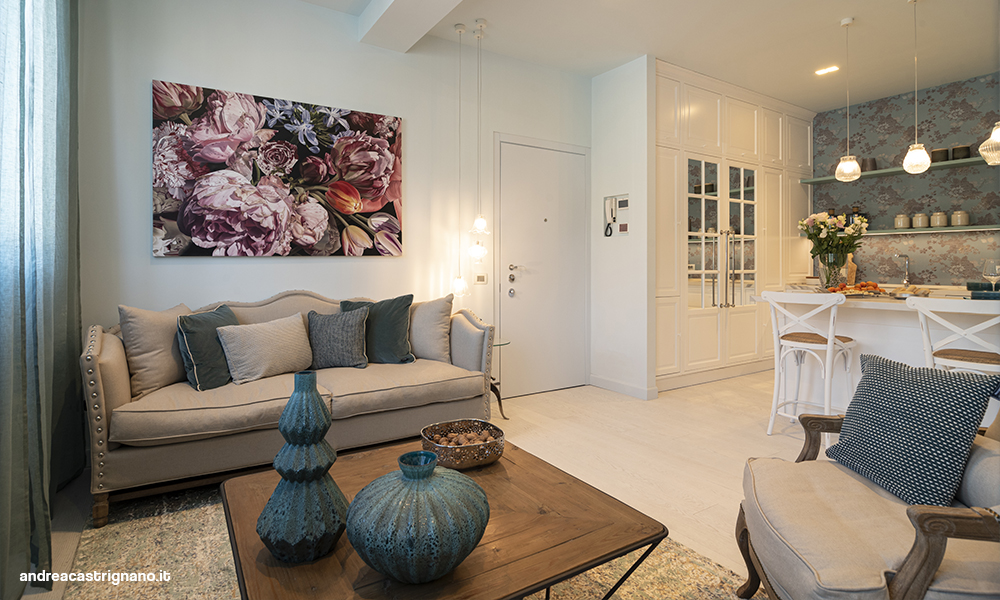 Lo stile che ho pensato per la sua casa è molto romantico: colori soft, forme morbide, superfici ricercate e decori preziosi. Al momento di selezionare le opere d’arte per la sua casa, mi è subito venuto in mente il lavoro del duo artistico Casagrande & Recalcati, che seguo da tempo.