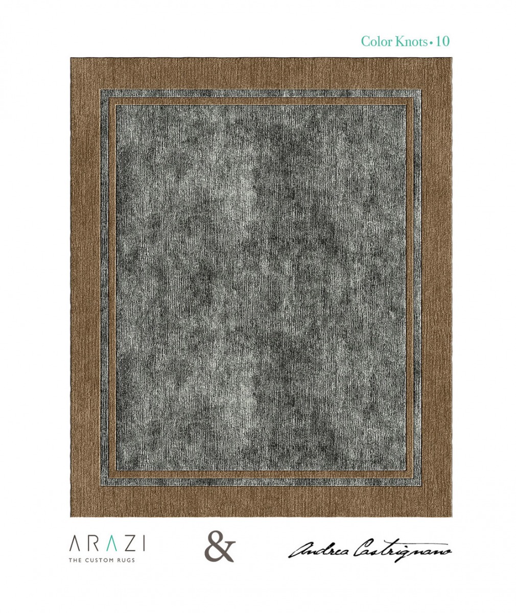 La grande esperienza di Arazi Home nell’arte della tessitura artigianale dei tappeti ha reso possibile la perfetta unione tra elementi tradizionali, come la seta e la lana lavorate a mano, e la mia filosofia sartoriale: ogni tappeto può, infatti, essere personalizzato nelle misure e negli abbinamenti cromatici. Il risultato è una collezione di tappeti unici per trame, colori e forme in cui non mancano le linee e i pattern iconici che identificano il mio stile, come l’esagono, il camouflage, il pied de poule.