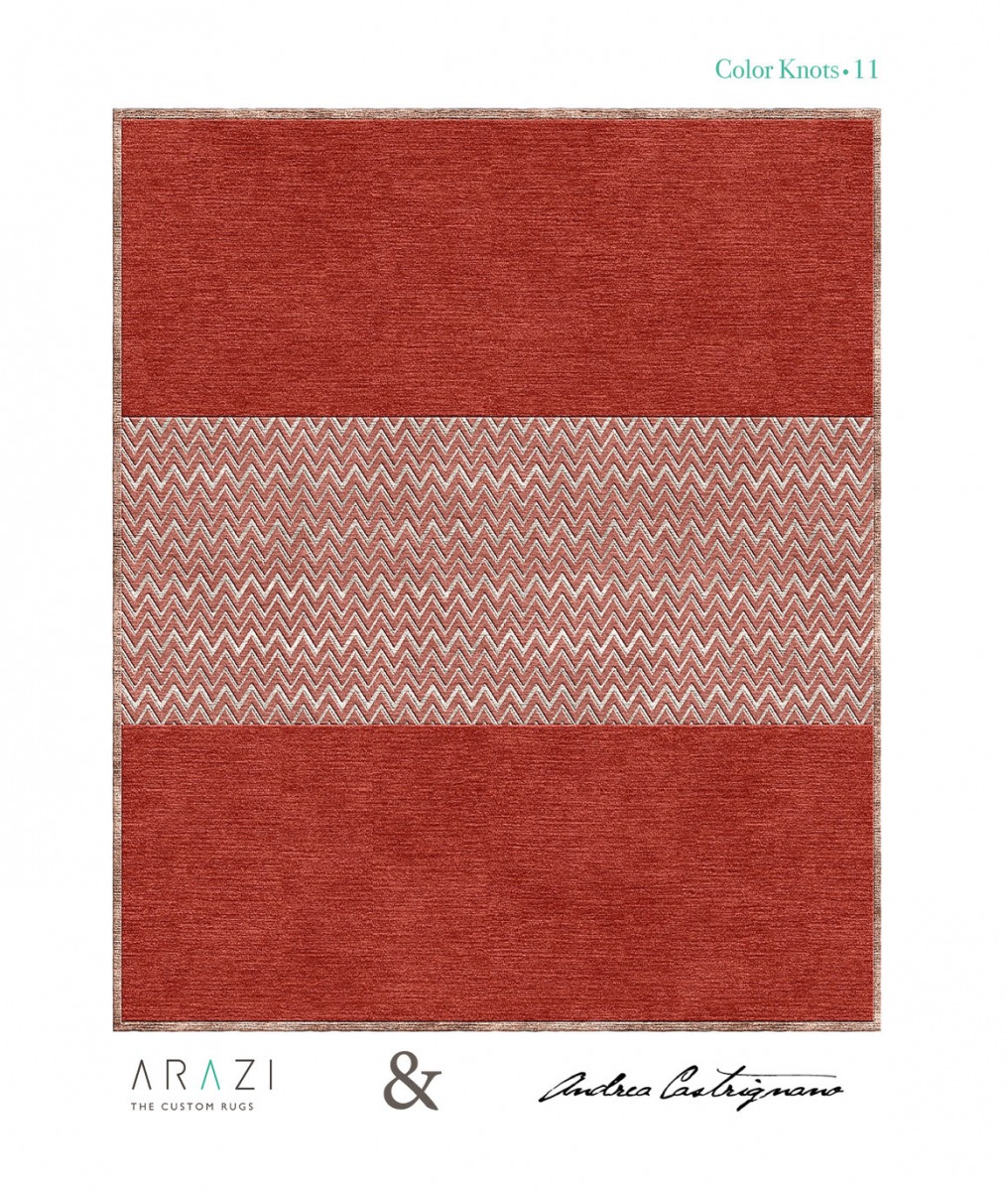 La grande esperienza di Arazi Home nell’arte della tessitura artigianale dei tappeti ha reso possibile la perfetta unione tra elementi tradizionali, come la seta e la lana lavorate a mano, e la mia filosofia sartoriale: ogni tappeto può, infatti, essere personalizzato nelle misure e negli abbinamenti cromatici. Il risultato è una collezione di tappeti unici per trame, colori e forme in cui non mancano le linee e i pattern iconici che identificano il mio stile, come l’esagono, il camouflage, il pied de poule.