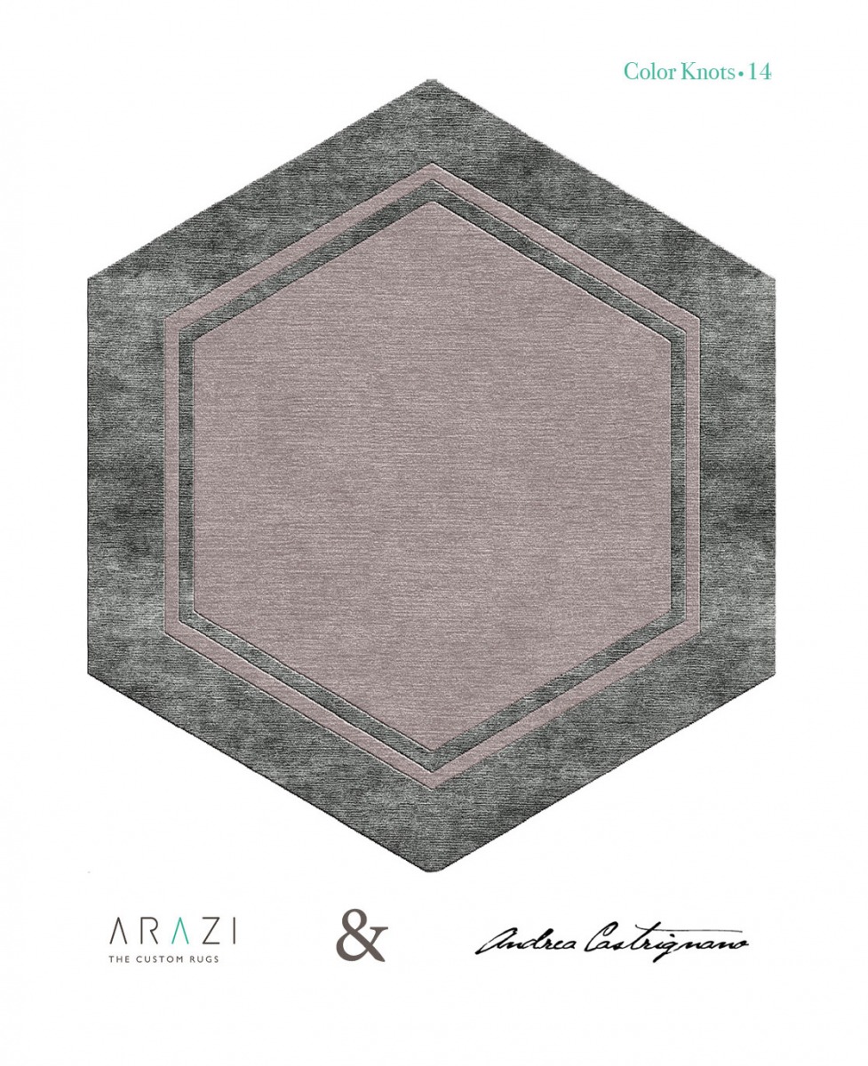 La grande esperienza di Arazi Home nell’arte della tessitura artigianale dei tappeti ha reso possibile la perfetta unione tra elementi tradizionali, come la seta e la lana lavorate a mano, e la mia filosofia sartoriale: ogni tappeto può, infatti, essere personalizzato nelle misure e negli abbinamenti cromatici. Il risultato è una collezione di tappeti unici per trame, colori e forme in cui non mancano le linee e i pattern iconici che identificano il mio stile, come l’esagono, il camouflage, il pied de poule.