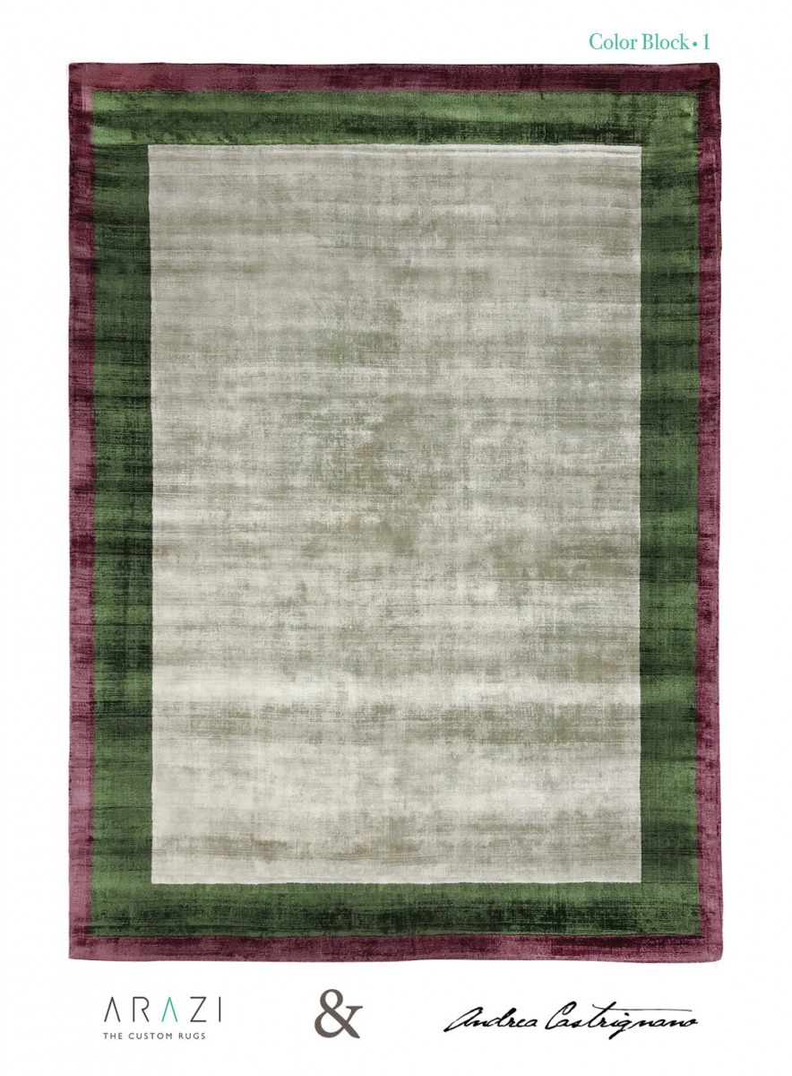 La grande esperienza di Arazi Home nell’arte della tessitura artigianale dei tappeti ha reso possibile la perfetta unione tra elementi tradizionali, come la seta e la lana lavorate a mano, e la mia filosofia sartoriale: ogni tappeto può, infatti, essere personalizzato nelle misure e negli abbinamenti cromatici. Il risultato è una collezione di tappeti unici per trame, colori e forme in cui non mancano le linee e i pattern iconici che identificano il mio stile, come l’esagono, il camouflage, il pied de poule.