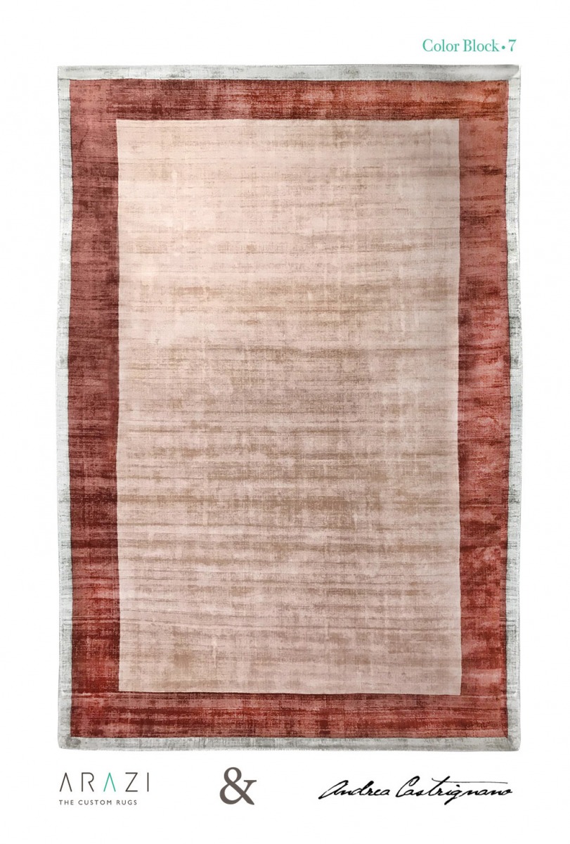 La grande esperienza di Arazi Home nell’arte della tessitura artigianale dei tappeti ha reso possibile la perfetta unione tra elementi tradizionali, come la seta e la lana lavorate a mano, e la mia filosofia sartoriale: ogni tappeto può, infatti, essere personalizzato nelle misure e negli abbinamenti cromatici. Il risultato è una collezione di tappeti unici per trame, colori e forme in cui non mancano le linee e i pattern iconici che identificano il mio stile, come l’esagono, il camouflage, il pied de poule.