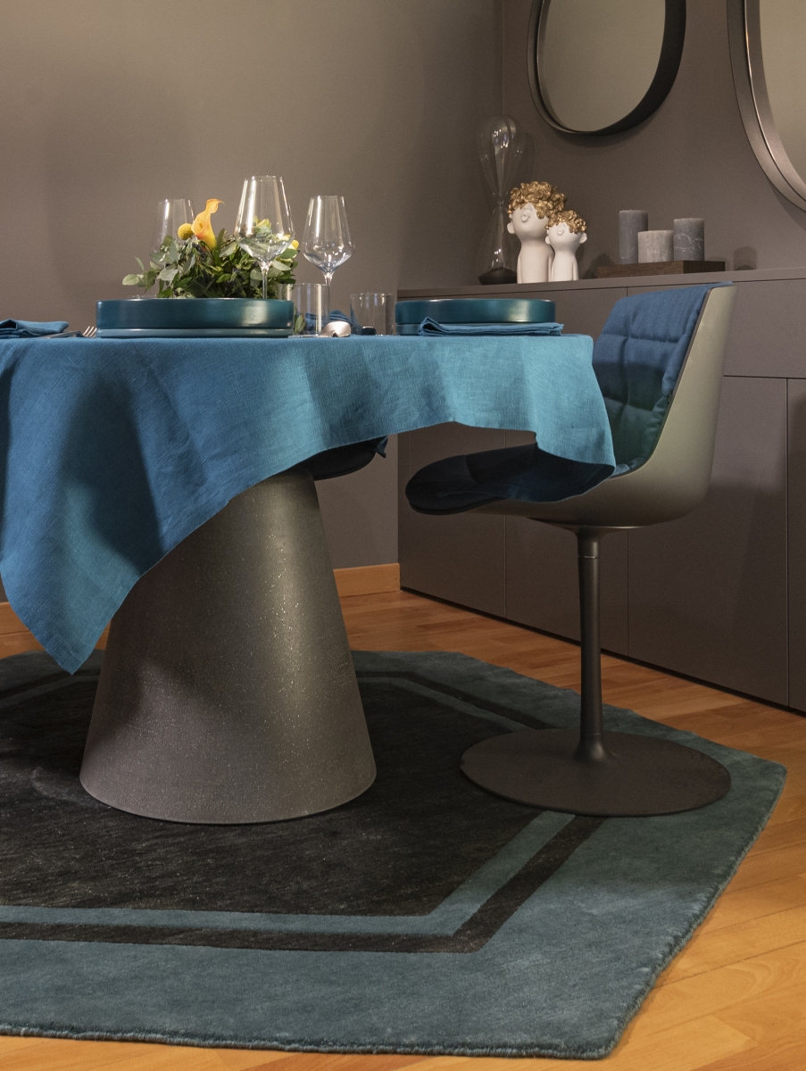 A partire dalle otto tonalità iconiche diventate distintive per i miei progetti – Ametista, Ardesia, Army, Balena, Paris, Petrol, Rouille e Wengè – Rugs Collection offre la possibilità di giocare con ben quaranta nuances perché di ogni tonalità sono previste cinque sfumature in degradè.