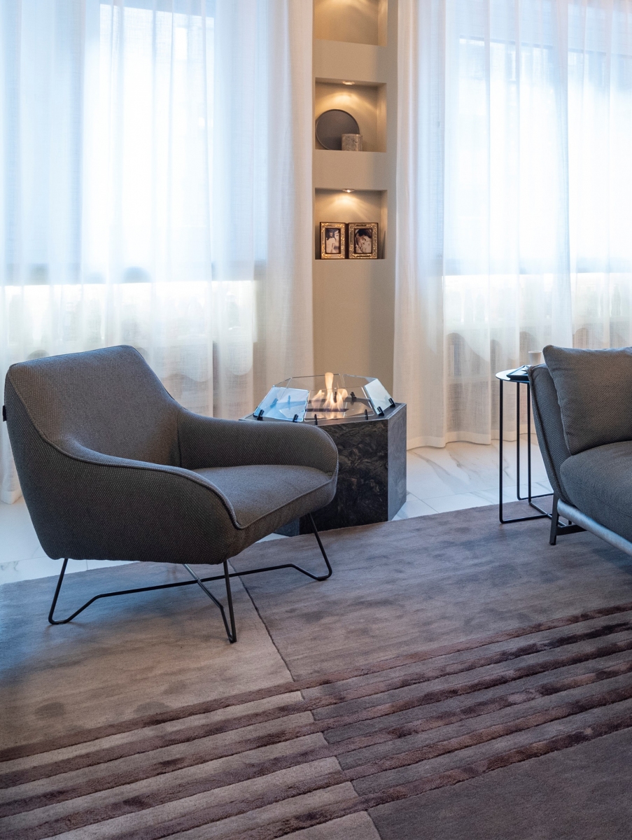 La grande esperienza di Arazi Home nell’arte della tessitura artigianale dei tappeti ha reso possibile la perfetta unione tra elementi tradizionali, come la seta e la lana lavorate a mano, e la mia filosofia sartoriale: ogni tappeto può, infatti, essere personalizzato nelle misure e negli abbinamenti cromatici. Il risultato è una collezione di tappeti unici per trame, colori e forme in cui non mancano le linee e i pattern iconici che identificano il mio stile, come l’esagono, il camouflage, il pied de poule.