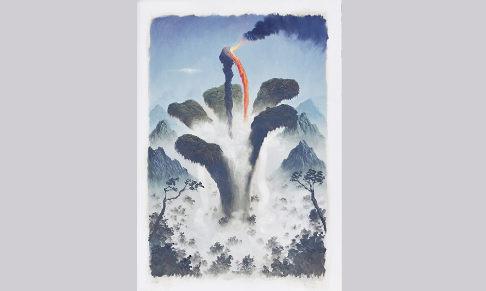 Così un albero si trasforma in un palazzo dalle finestre illuminate e una montagna in un profilo umano: elementi naturali che riconducono sempre alla presenza dell’uomo, alle sue azioni invasive che organizzano lo spazio in architetture ordinate, ma anche contaminanti.