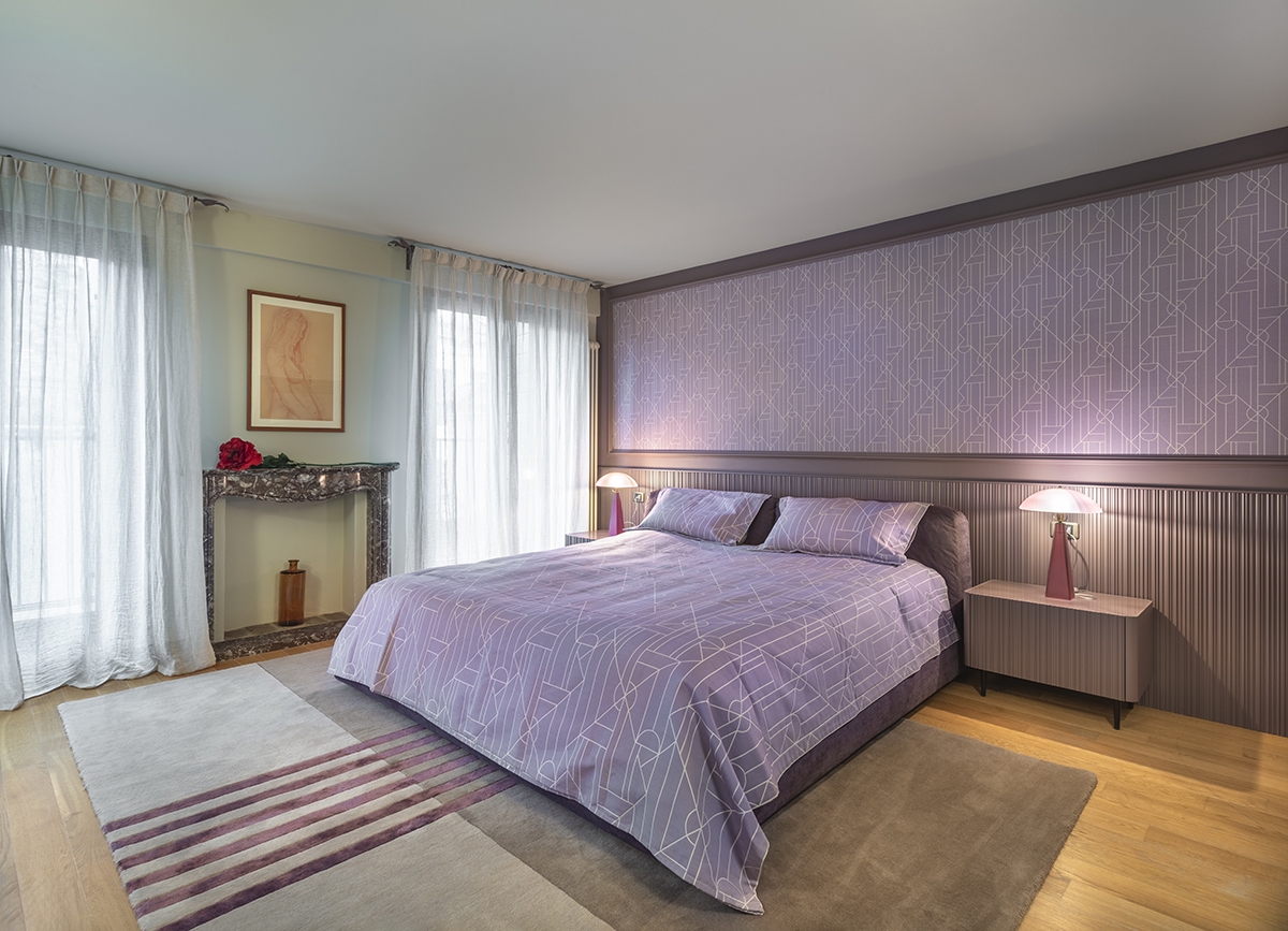 Le camere da letto sono un rifugio di tranquillità. I letti, con testiera imbottita e biancheria in tonalità, sono i punti  focali della stanza. Le carte da parati danno un tocco di colore e carattere alle stanze, rendendole personalizzate e sofisticate. I comodini minimalisti e le lampade da lettura dal design elegante completano l’arredo. Le tende leggere filtrano la luce naturale, creando un’atmosfera intima e rilassante.