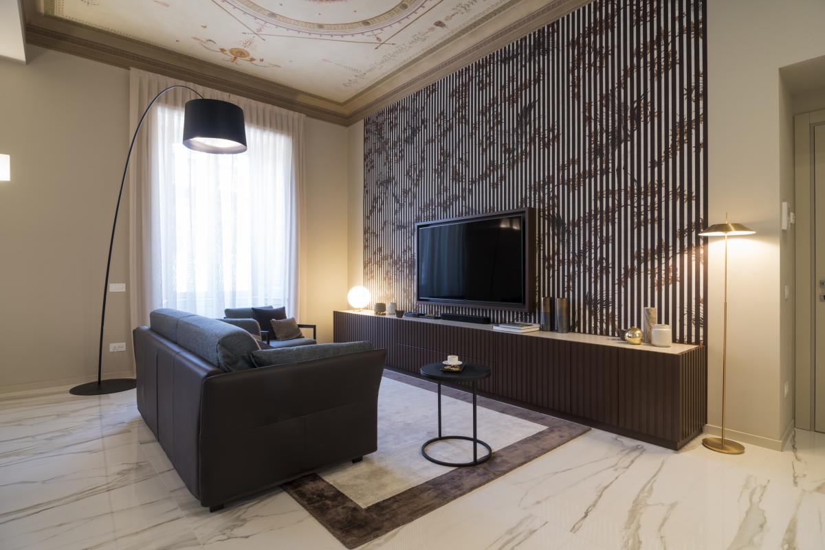 Credits: Maiullari (cucina), Itlas (paequet), London Art (wallpaper), Florim (rivestimenti ceramici), Bertolotto (porte interne), Sonos (audio), Mgs (tavolo), Brochier (cuscini), Fazzini (lenzuola), Novellini (box doccia), Easydom (domotica), Duravit (sanitari e piatto doccia), Colombo design (maniglie), Covema (vernici).