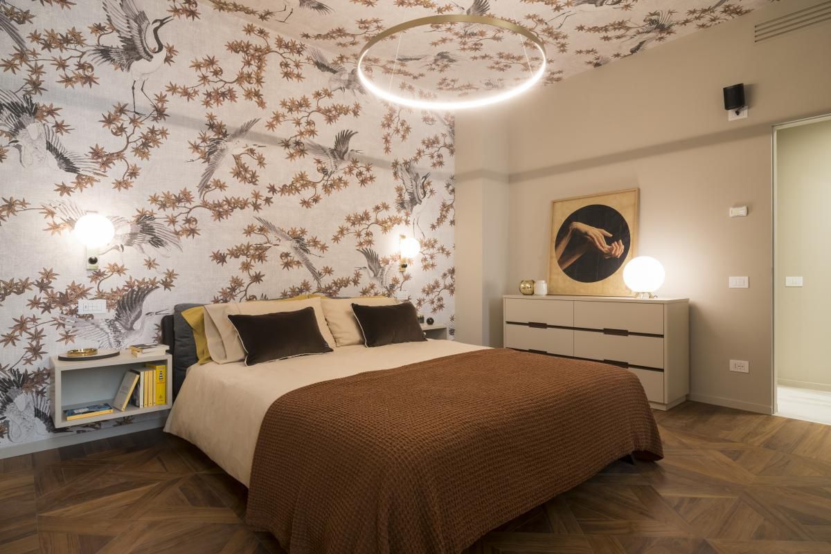 Credits: Maiullari (cucina), Itlas (paequet), London Art (wallpaper), Florim (rivestimenti ceramici), Bertolotto (porte interne), Sonos (audio), Mgs (tavolo), Brochier (cuscini), Fazzini (lenzuola), Novellini (box doccia), Easydom (domotica), Duravit (sanitari e piatto doccia), Colombo design (maniglie), Covema (vernici).