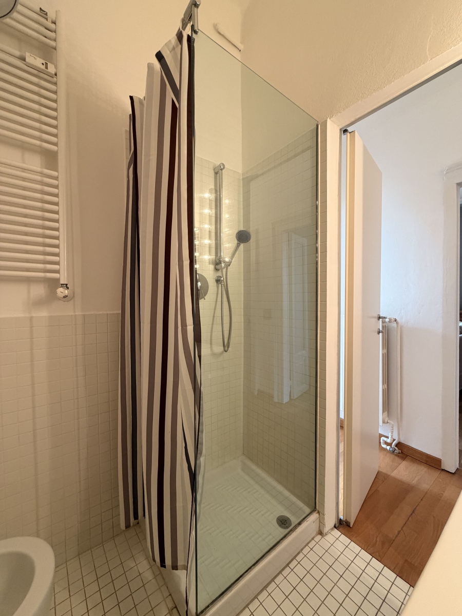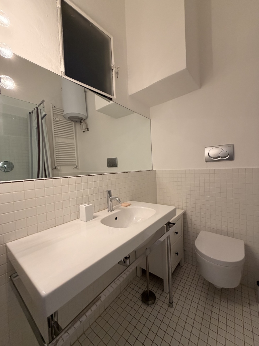 - Bagno con finestra: finemente ristrutturato, moderno, con sanitari sospesi e doccia.